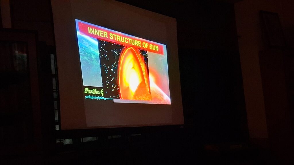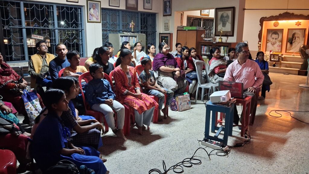 On Friday, 13th February 2026, the Sri Aurobindo Sakti Centre organised an engaging science audio-visual presentation on the topic The Sun. The session presented by resource person Mr. Partha Ghosh covered a wide range of fascinating subjects, including the measurement and temperature of the Sun, the colours of stars, the Sun’s inner structure and elements, solar energy, sunspots, different types of stars, aurora lights, the birth and death of stars, black holes, and what lies beyond. The presentation was thoughtfully designed to make these complex concepts accessible and interesting for students. The audience comprised students from Classes 6 to 10, along with teachers and other interested participants. Events such as this reflect the spirit of Sri Aurobindo’s insight that to sustain students’ attention in their studies, lessons must be made engaging and inspiring.