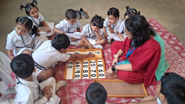 The School has two sections – Nursery and Kindergarten both being divided further as Nursery A & Nursery B and KG-I and KG-II. Nursery A and B have three sections each while KG-I and KG-II have two sections each. Each section is put in charge of a teacher while teachers are assisted by assistant teachers in some sections to ensure a healthy teacher : pupil ratio. The present teacher : pupil ratio in the section with highest number of students is about 1 : 20. A team of attendants are on duty to take care of students.
